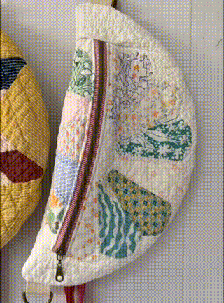 Met zorg vervaardigd van zachte, gewatteerde stof en een unieke mix van vintage-achtige patronen, voelt elke tas warm, persoonlijk en karaktervol aan. De gebogen vorm maakt hem gemakkelijk te dragen, licht van gewicht en perfect voor alledaagse uitstapjes.
