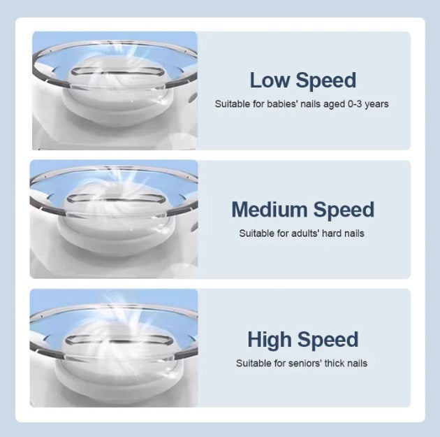 3-SPEED ADJUSTMENT – Offers three speed settings to suit different nail thicknesses and care needs. Easily adapts to both adult and child nail sizes and hardness, making it a shared family tool for perfectly groomed fingertips.