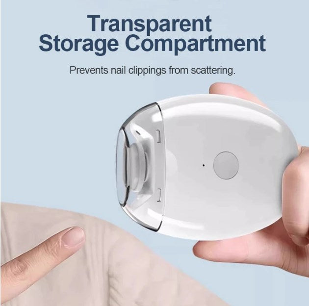 AUTOMATIC GENTLE FILING – Starts automatically upon contact with the nail, providing 360° smooth and even filing without manual pressure. Protects the nail surface, and the transparent storage compartment prevents nail clippings from scattering—safe and easy for beginners and children.