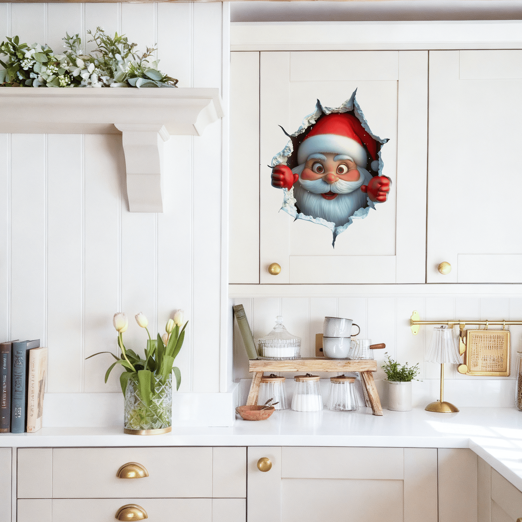 Looks like Santa himself is bursting through your wall! A fun, creative twist that instantly transforms dull spaces into a joyful holiday scene.
